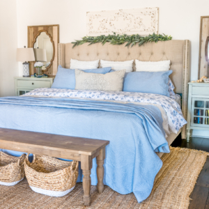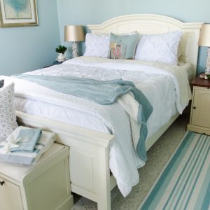 Bedroom Styling Tips: Blue and White Coastal Cottage Inspired Bedroom