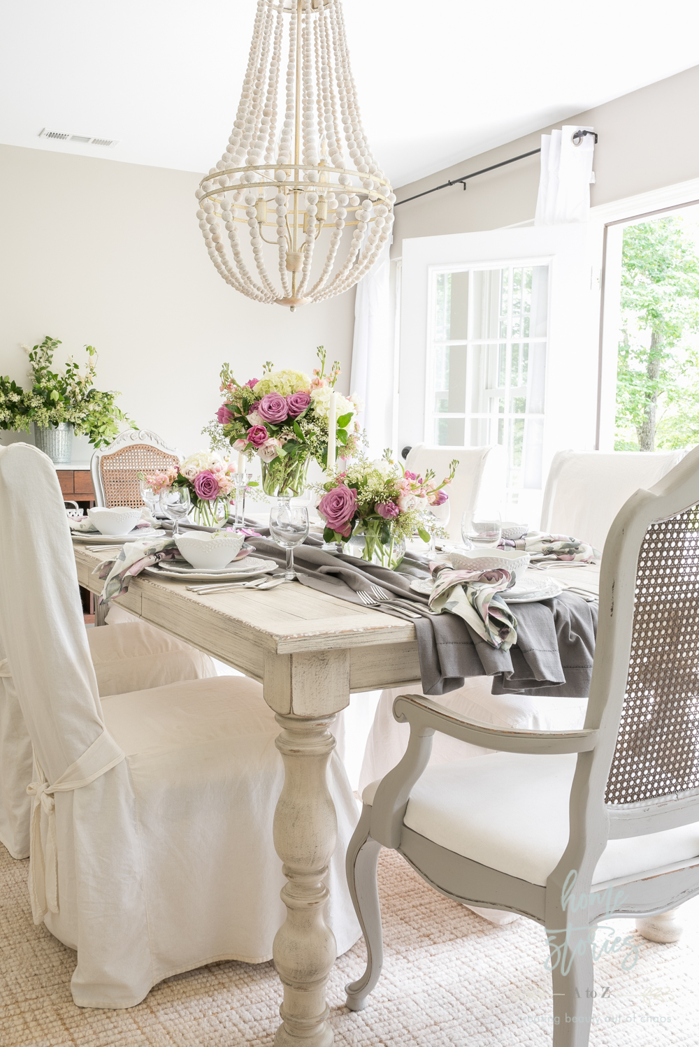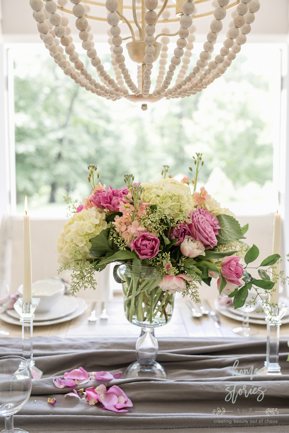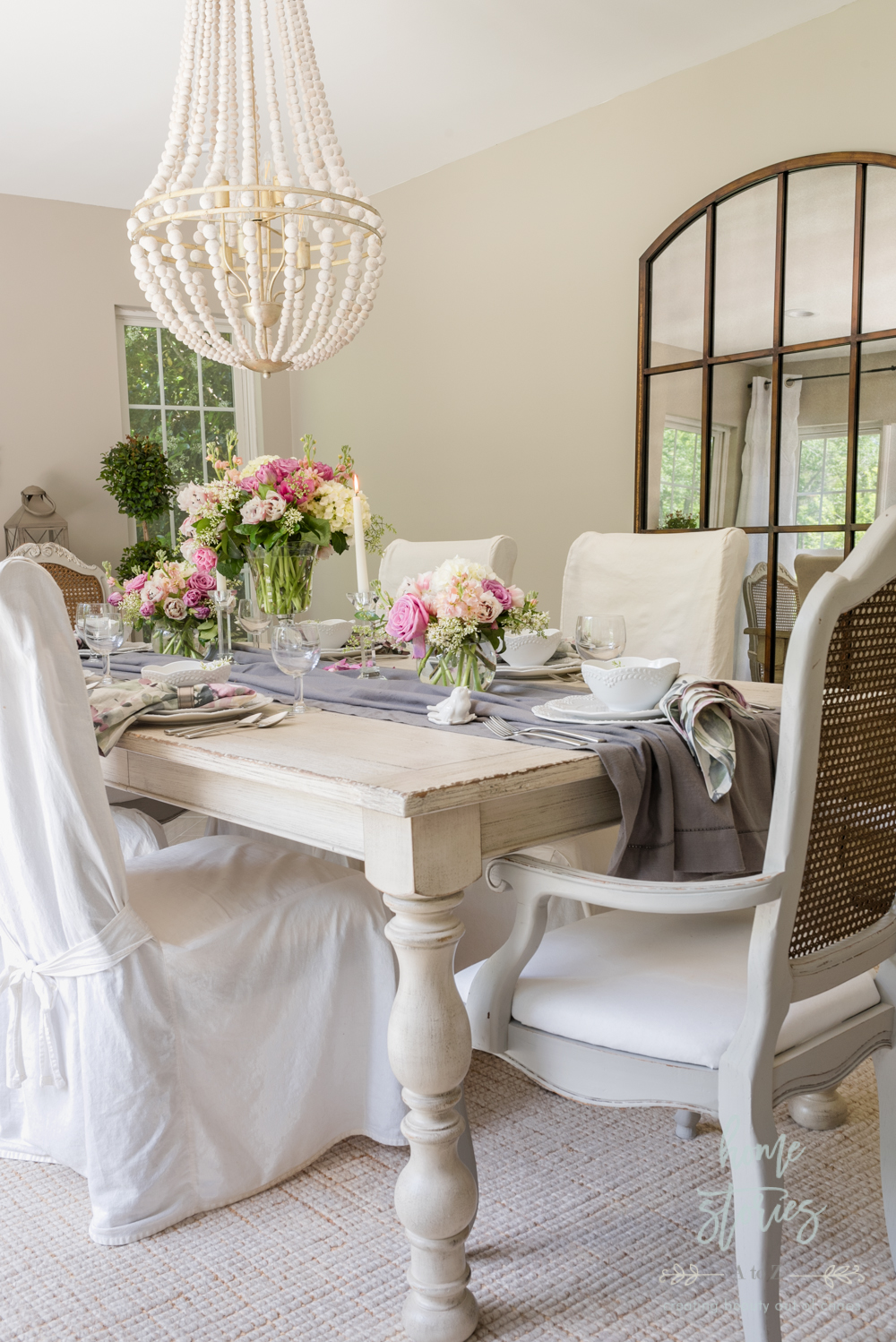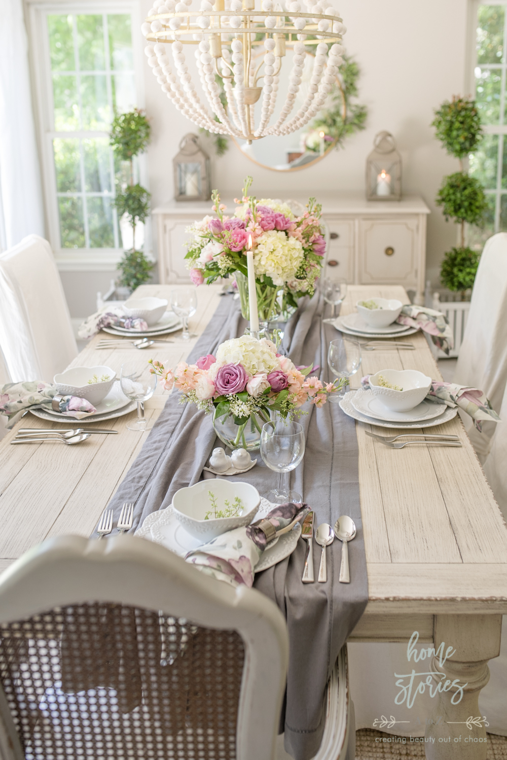 Creating beautiful tablescapes is something I love to do! It gives me an opportunity to play with texture, color, and decor ideas on a smaller scale. This week I get to celebrate both Mother’s Day as well as my 20th wedding anniversary! We like to celebrate milestone events as a family, so I wanted to create a special look in the dining room where we can enjoy some good food and make some memories. I am so pleased with the end result and will be sharing a few quick tips on how you can also become a tablescape pro!