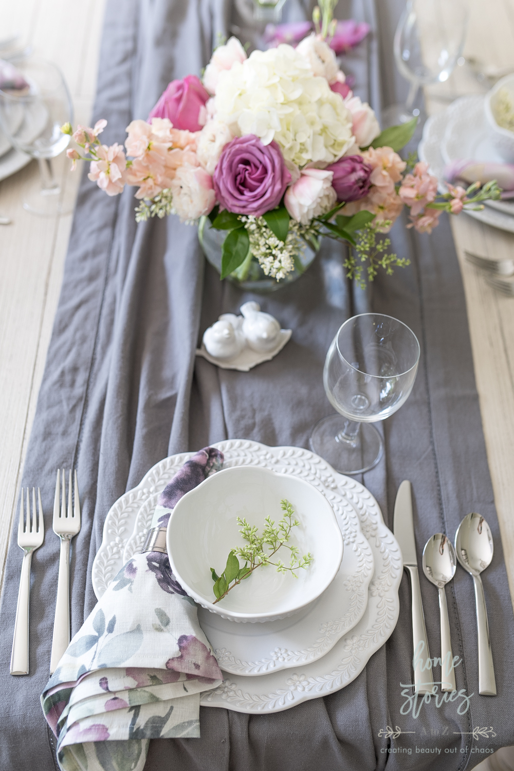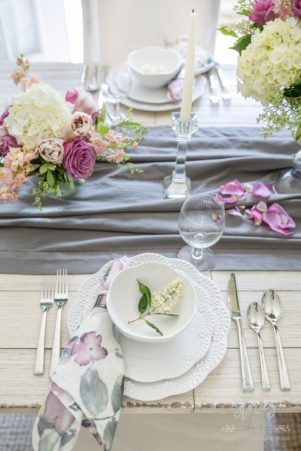 Your table setting is stunning! From the gorgeous flowers to the beautiful dishes – I love it all!